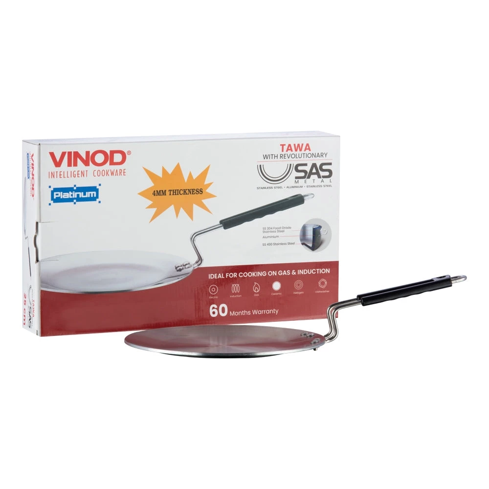 Vinod Platinum triply stainless steel series is made up with SAS technology, which is a triple layer construction of stainless steel, aluminium and stainless steel.
