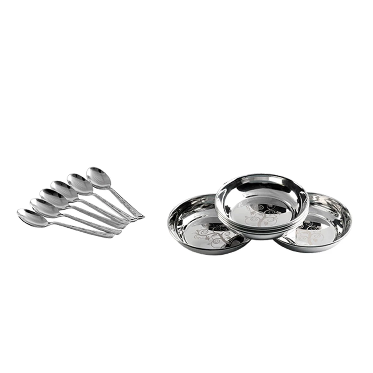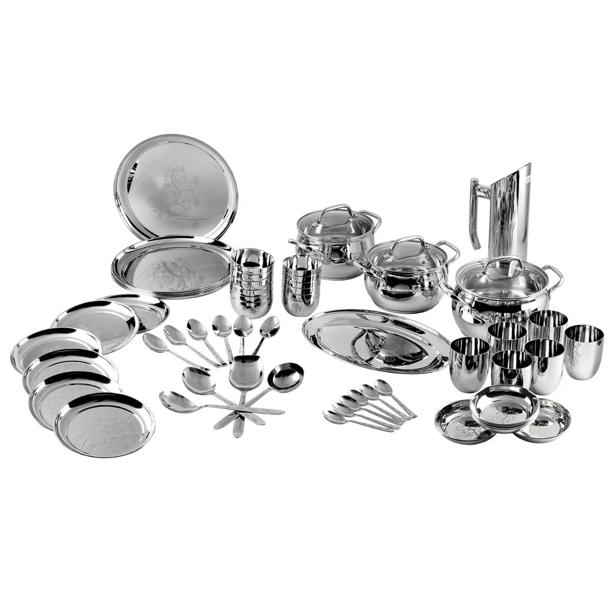 Easy to clean and maintain the stainless steel dinner set is the server’s delight. Featuring a highly attractive design, this lunch/dinner set will impress your lunch and dinner guests while providing a great canvas to showcase your delicious food. It does not retain or impart colours, odours, stains or flavours and is suitable for serving all types of cuisines.