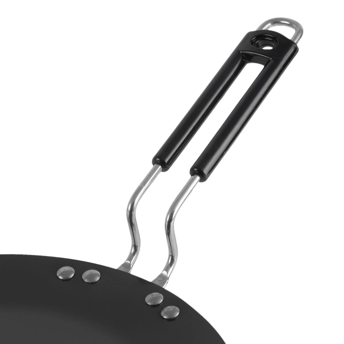 The beautiful, durable black finish which is hard anodised virgin Aluminium has two benefits i.e., it makes the cookware absorb heat faster, making it more energy efficient and the cookware stays looking the same for years.