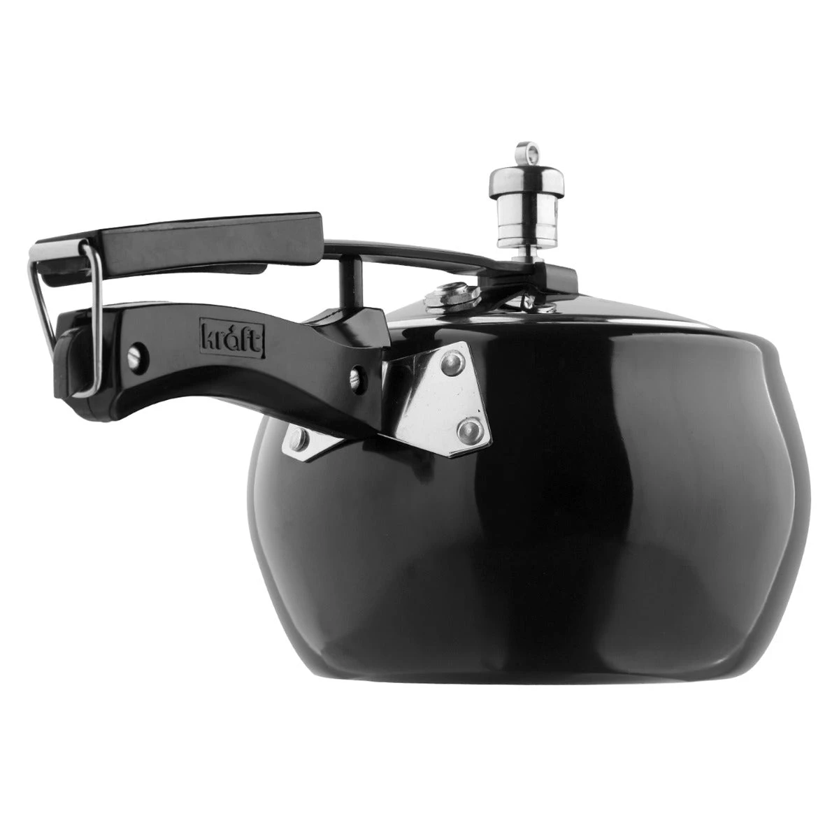 The Kraft hard annodised inner lid pressure cooker maximizes cooking space and seals in the nutrients of your food, thus promoting healthier cooking. Hard anodised virgin aluminium prevents the surface from chipping or peeling it resists abrasion or corrosion and keeps the metal chemically stable; acidic food will never corrode the cooker. Ideal heat resistant handles are designed to conveniently fit the curve of your palm.