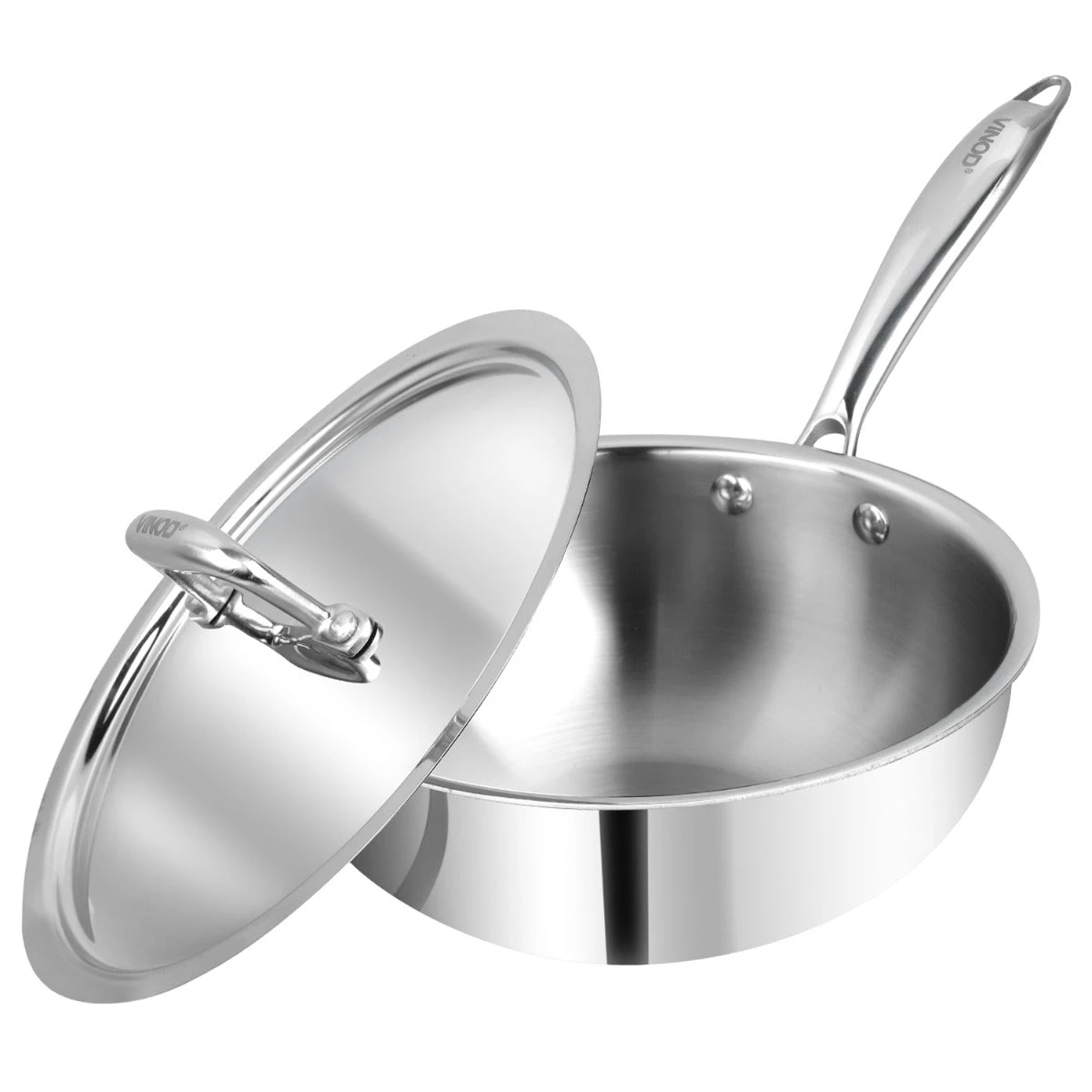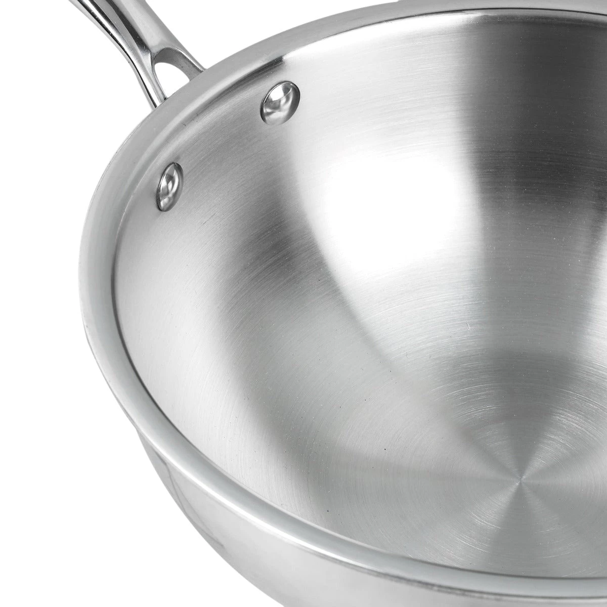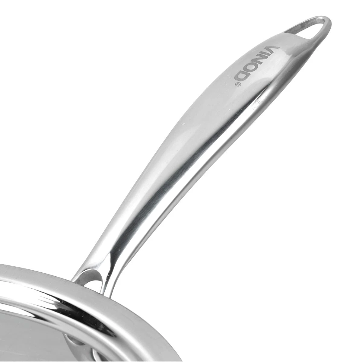 This triply stainless steel deep frypan comes with riveted stainless steel handle that is ergonomically designed, provides maximum durability and extreme comfort. It is compatible across all heating platforms like gas, induction, ceramic, infrared and hotplate. Make wholesome nutritious healthy dishes including stir fried vegetables, omelet, gravies, pancakes, fish fries and much more.