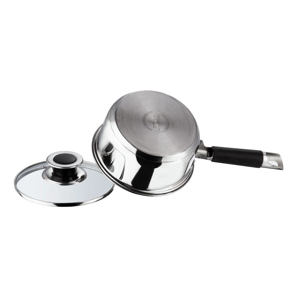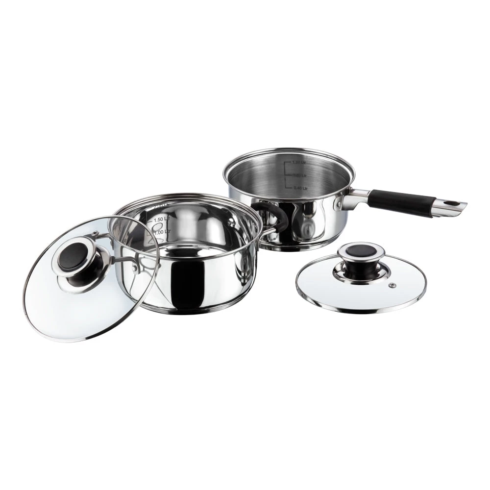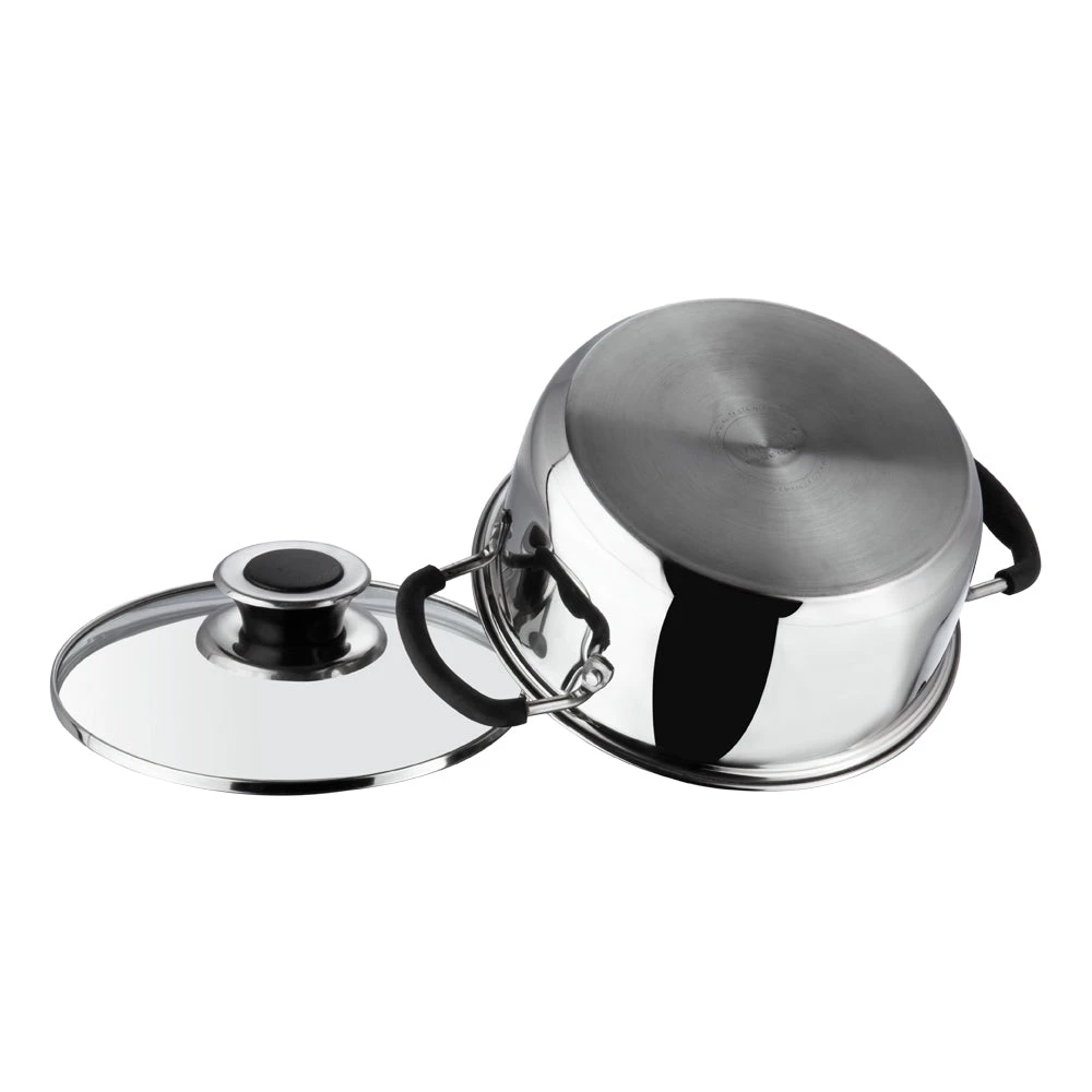 The Master Chef cookware set, true to its name is a asset to any kitchen. All components of this cookware come with a capacity marker making measuring ingredients a breeze. Silicon handles stay cool to the touch and ensure a firm grip when cooking or lifting. While the glass lids with steam vents ensure
