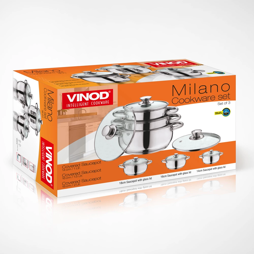 | Dimension & Capacity | Saucepot: 14 cm – 1 Litre, 16 cm – 1.6 Litre, 18 cm – 2 Litre |