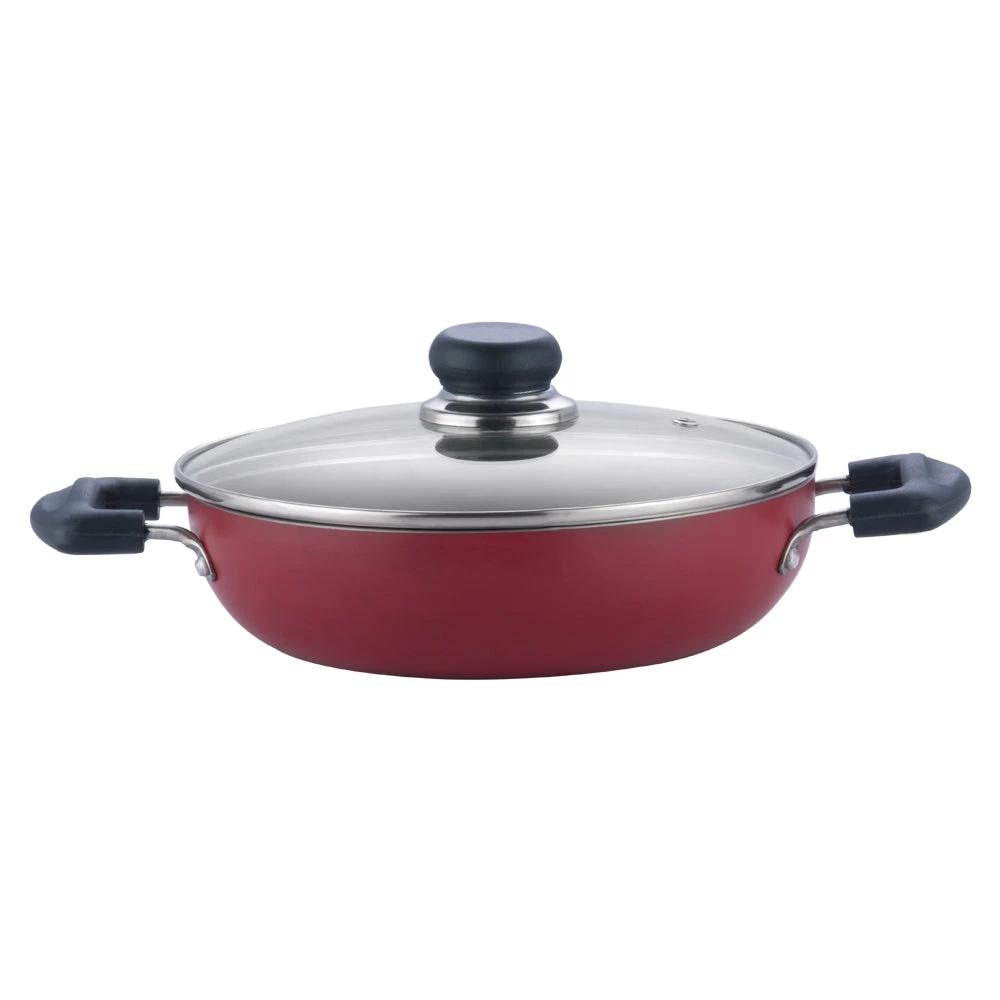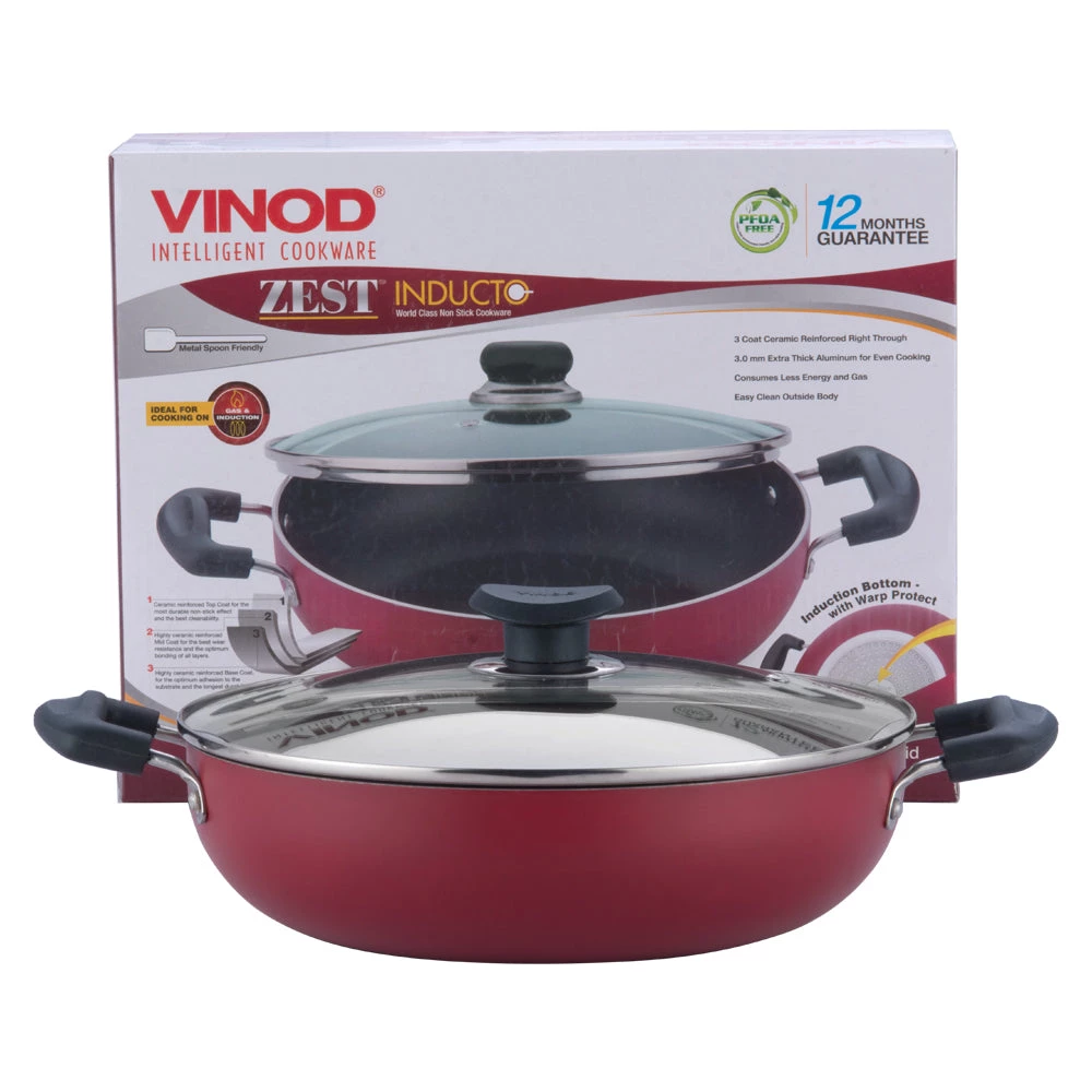 This Vinod non stick kadai with glass lid has a thick aluminium which ensures faster and burn free cooking. It is must have in your kitchen. You can make your food healthier with the help of this non-stick kadai, as it consumes less oil. It comes with glass lid which makes you cook faster and keeps your food warm. The lid also has a steam release vent.